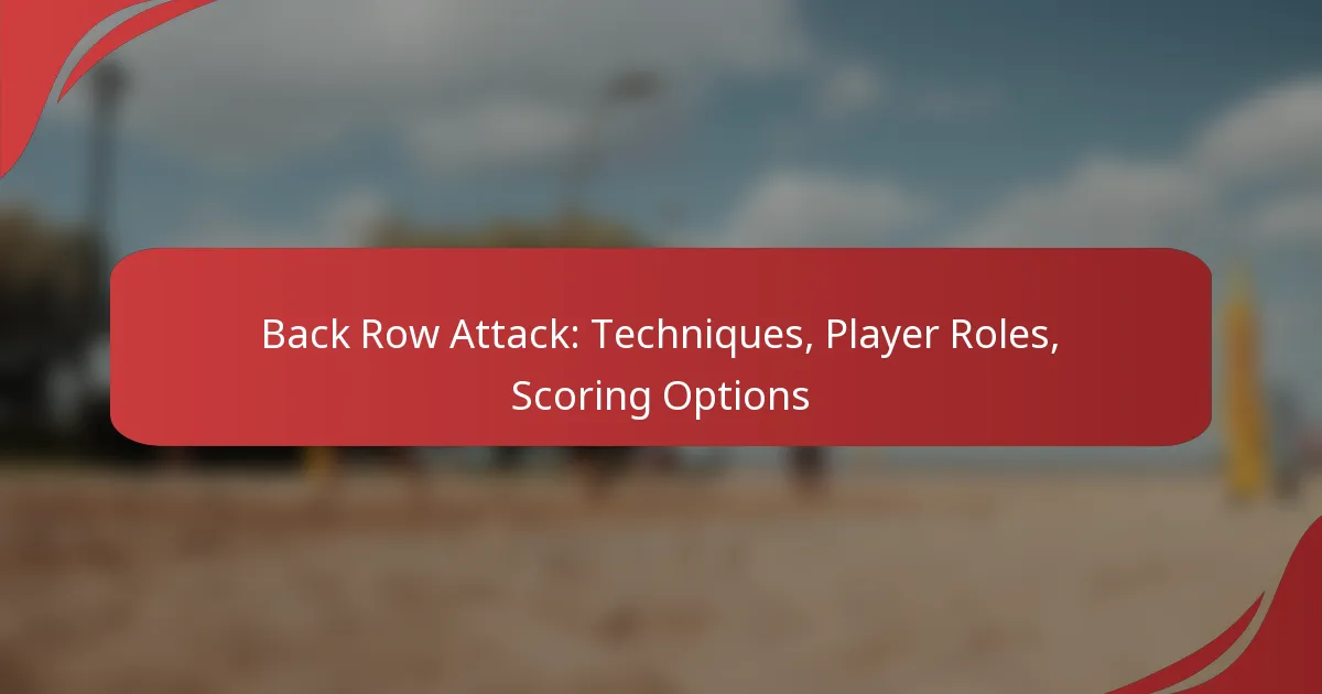 The back row attack is a dynamic offensive strategy where players execute powerful hits from the back line, utilising techniques such as precise footwork and timing. This approach not only enhances scoring potential but also emphasises the importance of player roles in transitioning from defence to offence, fostering effective communication with front row teammates. By leveraging various scoring options, teams can strategically exploit defensive weaknesses to secure points and enhance their overall performance.