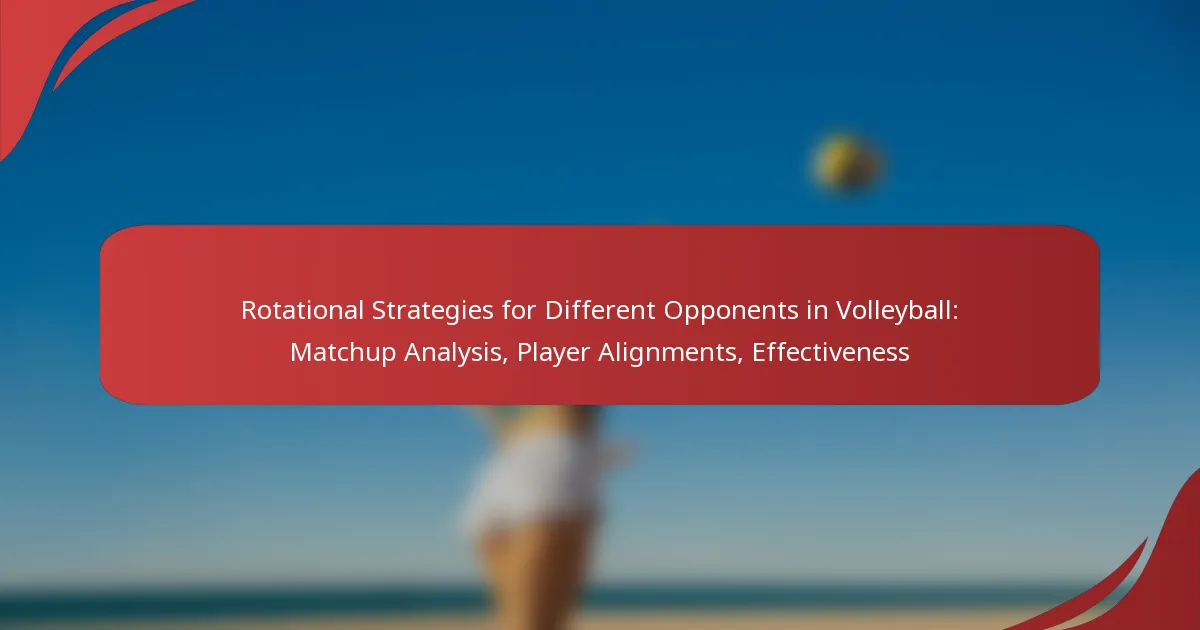 In volleyball, key rotational strategies are essential for maximising team performance against diverse opponents. By systematically adjusting player movements and alignments, teams can leverage their strengths while exploiting the weaknesses of their rivals. Analysing opponent characteristics is crucial for developing effective matchup strategies that enhance overall gameplay and effectiveness during matches.